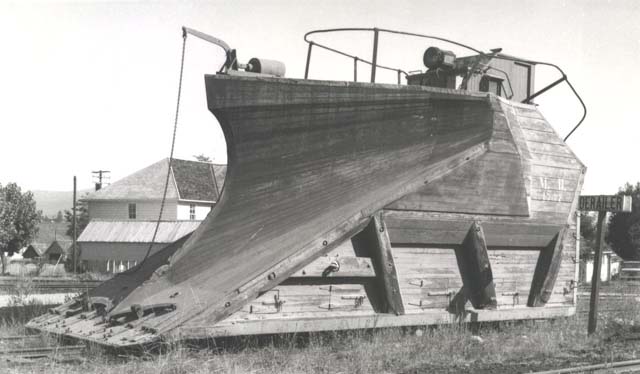 The rear of the plow in June 2008. The railroad used old axles to add weight to the plow.