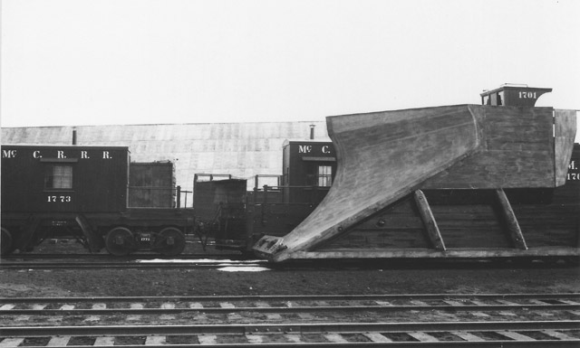 McCloud snow removal equipment in the McCloud yards. From the T.E. "Eddy" Glover collection.