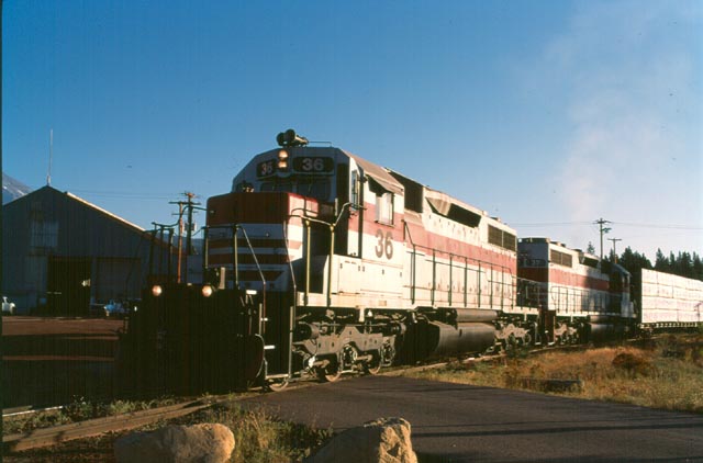 The #36 passing the old paint shop building while pulling the loaded cars across the track scale. Once the