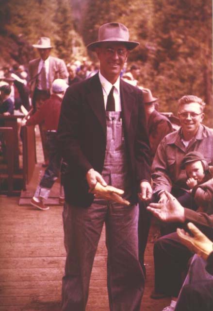 McCloud River Railroad conductor Joe Bonneville on the 1955 Gold Spike special