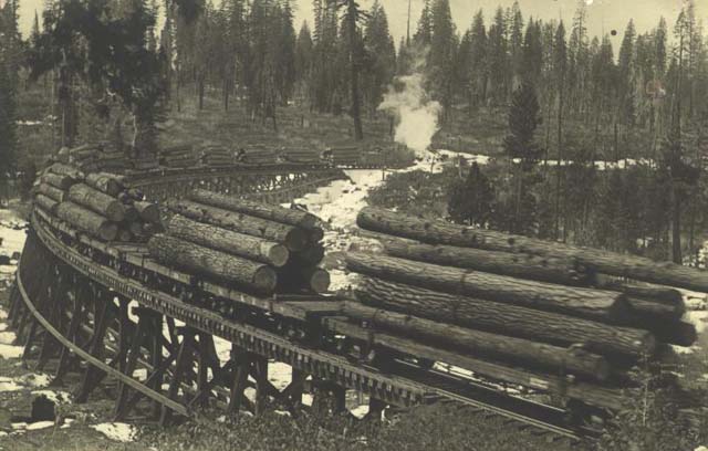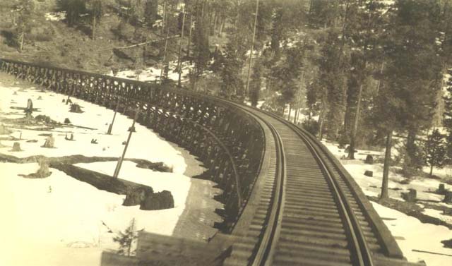 One of the favored photo spots on the McCloud River Railroad was this long curved trestle a couple