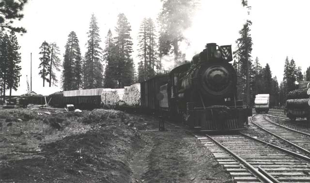 One of the railroad's mikados switching carloads of new ties, likely in Pondosa.