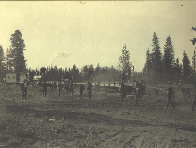 A steel gang taking up a temporary log spur somewhere in the Ash Creek Country.