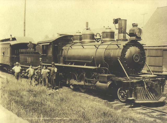 Locomotive #10 Baldwin 2-6-2 Built- 1901 c/n- 18674 Drivers- 44" Cylinders- 16x24 Weight- 107,000 lbs. Boiler pressure- 180 lbs. Tractive effort- 21,330 lbs. |