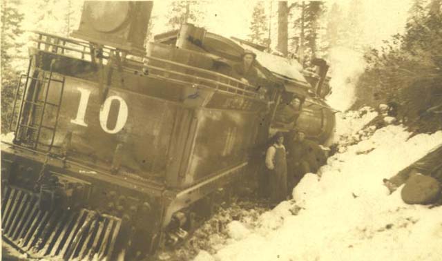 Trouble in the woods...the #10 stubbed its toe and is waiting for help to arrive. Note that the locomotive now burns oil instead of wood,