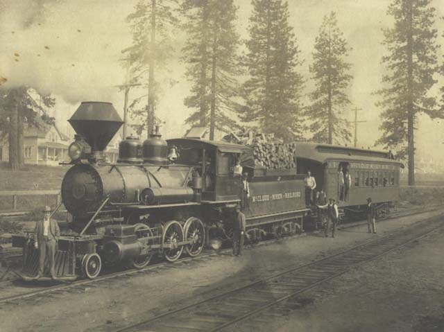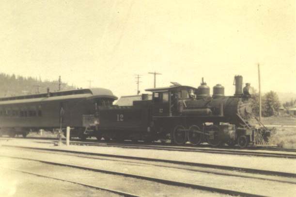 A later shot of the #12, this time with coach #02. Note that the locomotive now burns oil. Photograph courtesy of Heritage Junction Museum of McCloud, Inc. |