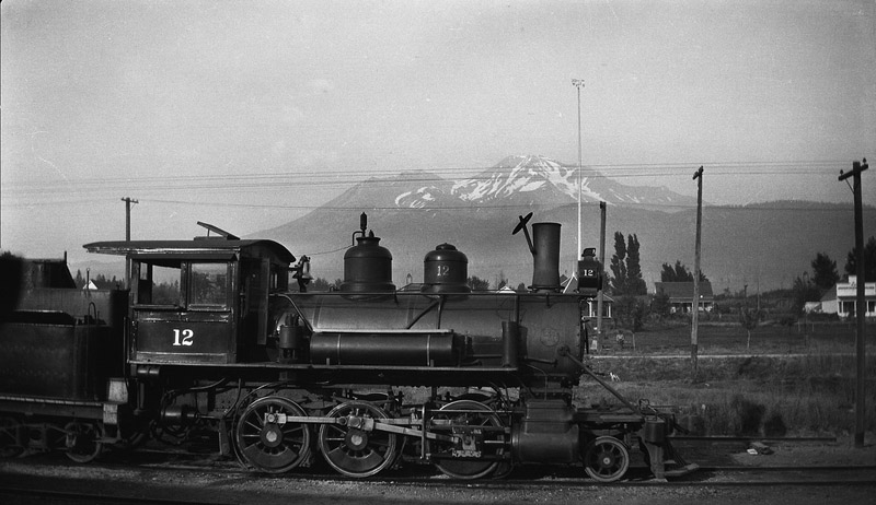 The #12 at rest in the Mt. Shasta City yards between runs about 1920. Benjamin St. John photograph, from the Kat Mulkey collection. |