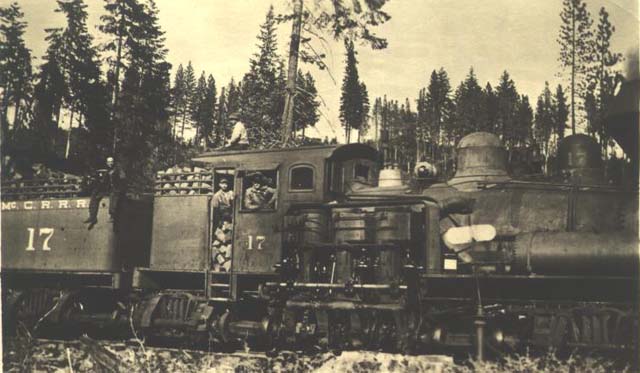 | Another shot of the #17 switching a landing in the woods. Photo courtesy of Heritage Junction Museum of McCloud, Inc. |
