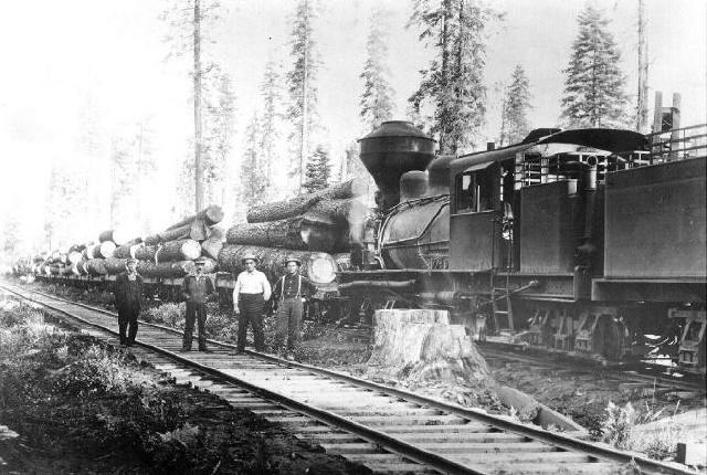 | The #17 with a log train out in the woods. Photo from the Fred C. Stoes collection and is courtesy of Yesteryear Depot. |