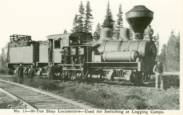 | The #17 featured in a post card advertisement produced by the McCloud River Lumber Company. The No. 13 in the bottom left corner of the card refers to the number of this card in their series...not the locomotive number. Jeff Moore collection. |