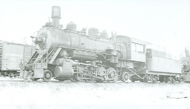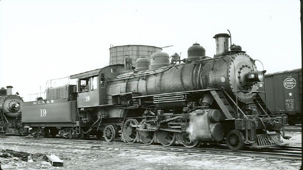The #19 with caboose #031 in the McCloud yards. Photo is from the Fred C. Stoes collection and is courtesy of Yesteryear Depot.