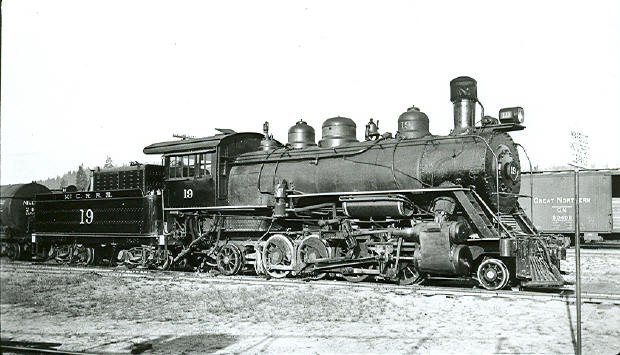 McCloud River Railroad Company Locomotive #19 Baldwin 2-8-2 Built- 1915 c/n- #42000 Drivers- 48" Cylinders- 20x28 Weight- 178,400 lbs. Boiler pressure- 180 lbs. Tractive effort- 35,700 lbs. |