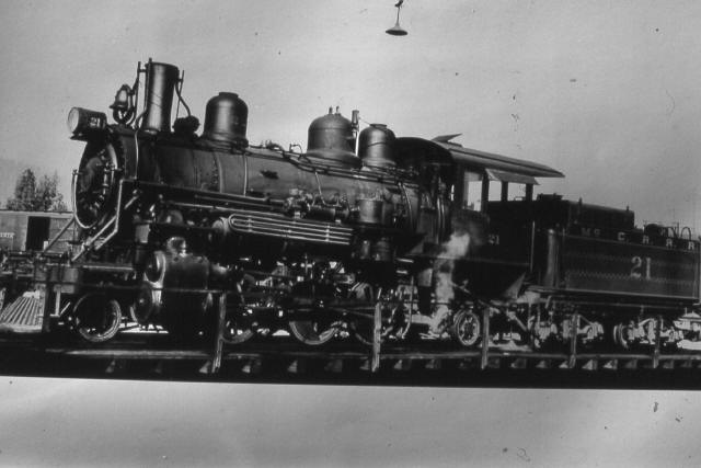 | Locomotive #21. Picture was originally from issue #529 of the Western Railroader and is from the Glen Comstock collection. |