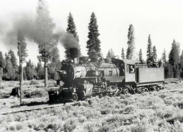 | This photo depicts the locomotive at Pondosa. Photo from the George Landrock collection. |