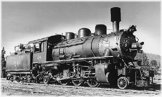 McCloud River Railroad Company Locomotive #24 Alco 2-6-2 Built- 1925 c/n- 66434 Drivers- 46" Cylinders- 19x24 Weight- 144,000 lbs. Boiler pressure- 185 lbs. Tractive effort- 28,800 lbs. |