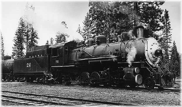 McCloud River Railroad Company Locomotive #26 Alco 2-8-2 Built- 1915 c/n- 55492 Drivers- 48" Cylinders- 20x28 Weight- 195,000 lbs. Boiler pressure- 180 lbs. Tractive effort- 35,700 lbs. |