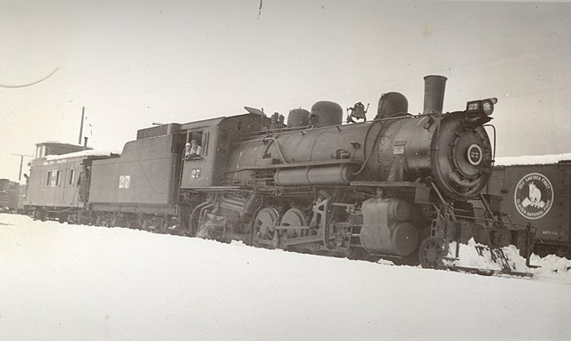 | Another shot of newly arrived #27 with a leased Western Pacific caboose in McCloud. Photo from the Travis Berryman collection. |