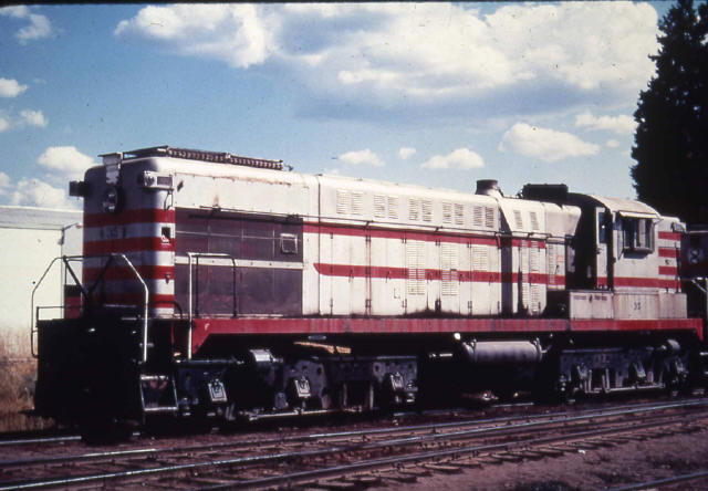 | The #35 sitting in the McCloud yard in June 1969, awaiting disposition after it was replaced by the arrival of the SD38’s. Note that the #35, in its brief career on the road, had been painted and numbered but never lettered. Unknown photographer, courtesy of Jimmy Bryant. |
