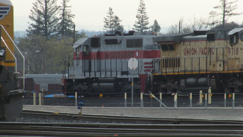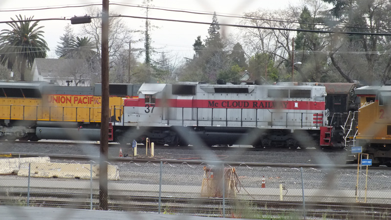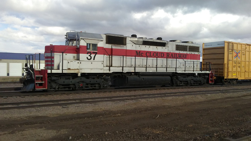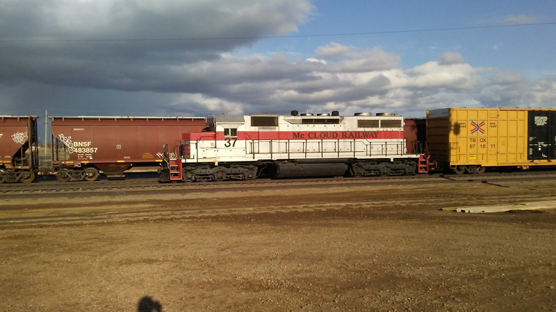 In October 2016, McCloud Railway's owner Midwest Pacific attempted to remove the three SD38s from the railroad. In the end only the #37 made it out of McCloud, and it sat at the Union Pacific interchange from October 2016 until UP finally picked it up in late February 2017. The locomotive had an interesting journey east- the original plan called for it to go to Klamath Falls, where it would be set out for pickup by a southbound train, which would forward it on to Roseville. The plan fell apart that first night when the #37's front drawbar pulled out around Macdoel, California. UP shoved the #37 in a spur at Dorris, California, where it sat for a few days until a southbound train picked it up. The #37 spent most of the next month in Roseville, at first getting repaired and then awaiting shipment east. That movement finally commenced on 22 March 2017, and the locomotive arrived in South Dakota by the first couple days of April. |