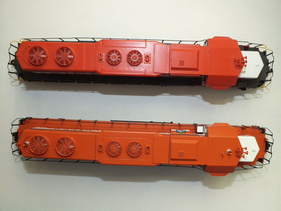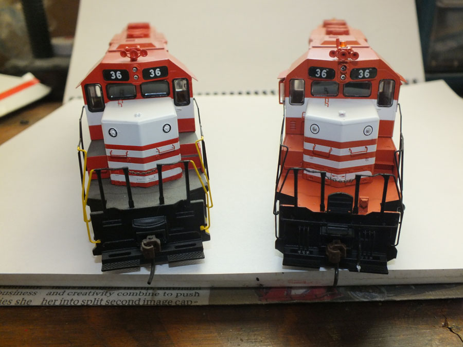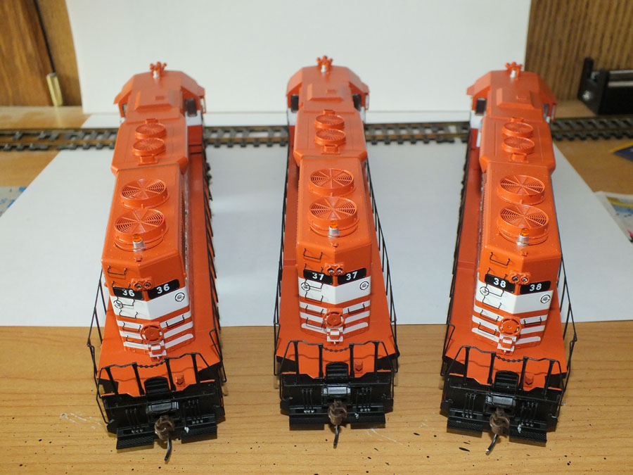 Eleven years ago Athearn released models of the McCloud River SD38s in the original orange and white paint. Athearn announced a second run of these models in July 2017, and they arrived on store shelves in late July 2018. I picked up my ordered set from a hobby shop in early August. First off, my initial impressions are that these models are significantly better than the first run. They have many additional detail parts above and beyond the first run, including all weather windows applied to the engineer side, air deflectors on the conductor side windows, drop steps, radio antennas, flasher beacons, better detailed air horns, and the correct smaller 3,200 gallon fuel tanks. They orange used on the models is not quite as red as the first run, which appears to capture the fading the paint jobs had in their service life. One of the most noteable differences between the two runs is Athearn painted the walkways the correct orange instead of the black used on the first run. Here are a few side by side comparison pictures of the #36 from the two runs showing some of the differences and improvements. ![]() The first run is at the top, the second run at the bottom. ![]() The other side of the two runs, once again the first run above and the second run below. ![]() Top view of models from the two runs. ![]() Head on view of the two runs, first run on the left, second run on the right, again showing improvements and upgrades between the two runs. ![]() Head on view of all three SD38s offered in this run. ![]() Aeiral front view of the three models. ![]() Rear view of the three units of the second run. One of the selling points Athearn indicated on this run is that the fuel tank could be removed to expose the cast motor block, which would approximate the units appearance with the small fuel tanks from their 1969 delivery up until the railroad installed the larger tanks (1978 on the #38, December 1981 for the other two). Here are two shots of the prototype #36 showing the original small fuel tank and then how it compares to the model with the fuel tank removed. ![]() ![]() These models do have a few slight drawbacks. As with the earlier runs, the fuel tanks are mounted slightly too far forward on the frame to be "correct". This is also true of the smaller fuel tanks, though allowances have to be made given that the "fuel tank" is the block into which the motor is anchored. There was some slight factory flaw in the painting process that caused the lettering on the right side of all the models to be incompletely applied over the shell details, resulting in slits of white appearing in a few of the black letters. Perhaps the biggest vusual incorrection on the models is the orange paint applied to the steps, these should have been either all black or with the yellow safety accents on the steps and handrails as featured on the first run. The models are available in both DC and DCC with sound versions; the flasher beacons on the DCC units light up, but out of the box they are incorrectly configured, with the rear flasher either off or on all the time. This last problem is fairly easily corrected with a bit of programming. On the whole, however, these are very nice models and are welcome additions to the modeling world. I highly recommend them. Athearn has announced they will be offering their wide vision caboose painted as McCloud River #101 and McCloud Railway #102, both due out in February 2019, followed in May by another release of several numbers of McCloud River incentive per diem boxcars. Athearn has indicated they may offer a second run of the brown and orange paint scheme in the future, along with the McCloud Railway red and silver. I hope they do. |