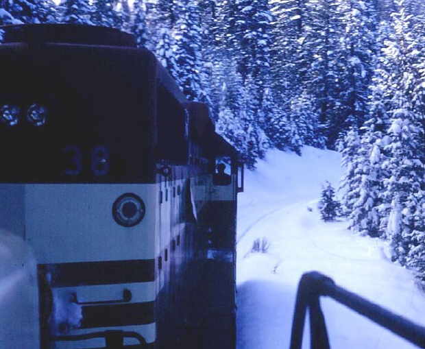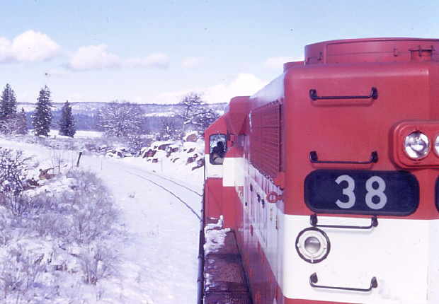 (Picture 38CaytonValley) #38 leading a train into Cayton Valley, taken from a trailing unit. Photo by and courtesy of George Landrock. |