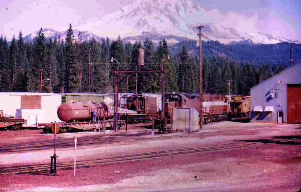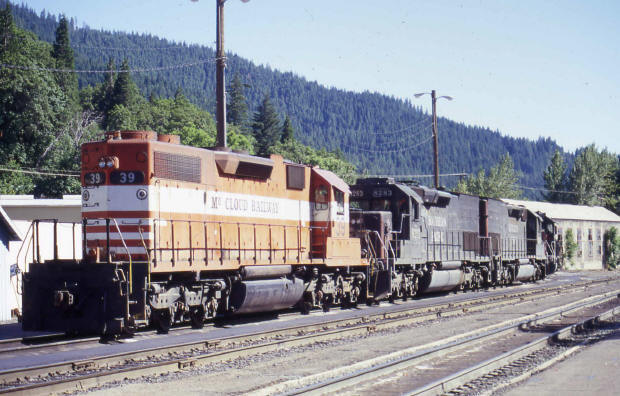 After it's sale to the Union Pacific in 1997, the #39 spent several weeks working out of Dunsmuir before being sent south for an overhaul and painting into UP colors. Jerry caught the unit sitting in Dunsmuir on this day in late summer 1997. |