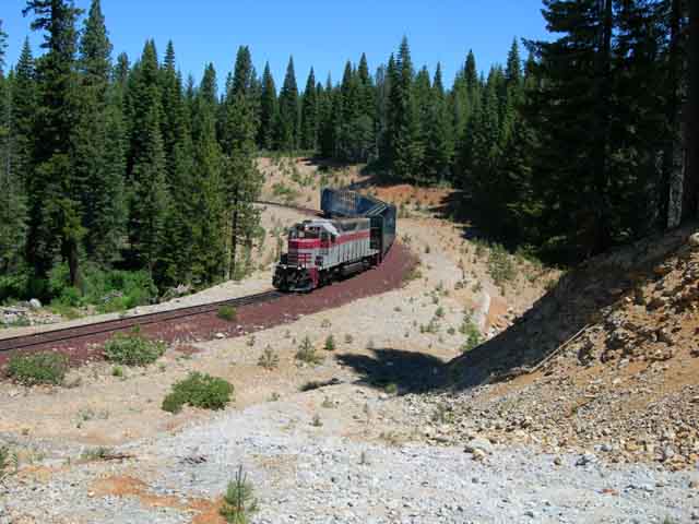 In mid-October 2005 the Surface Transportation Board granted the McCloud Railway Company permission to abandon the entire railroad east of McCloud, CA. The agency stayed the abandonment decision a few days later after Seaside Holdings Inc. filed a Notice of Intent to File and Offer of Financial Assistance along with copies of valuation reports and the like. The McCloud Railway indicated it would need some time to pull the requested reports together, and the company finally delivered to documents to Seaside and two other parties that had filed Notices of Intent to File OFA's in early June 2006. The McCloud valuation reports concluded that the part of the railroad to be abandoned has a net liquidation value of $4.8 million dollars. Meanwhile, the freight operations struggled on through the winter, which proved to be another trying one. The winter produced nowhere near the record snowfall amounts seen in some previous years, but the skeleton workforce left on the payroll and the once or twice a week freights made opening the line and then keeping it open a challenge. Years of deferred maintenance also took their toll, as derailments became almost a weekly event. Most of the wrecks were minor ones, but one on 2 June 2006 near Curtis tipped one loaded centerbeam on its side and shook up a couple other loads. Contracted cranes cleaned the wreck up and the employees patched the tracks back together so that the line could continue operations. The Staggers Act of 1980 allowed railroads among other things to levy surcharges on traffic moving over unprofitable routes to help the railroad cover the full costs of providing the service. Surcharges can aslo be used to discourage further use of a railroad that is losing money and has not real hope of becoming profitable in the future. On 12 June 2006 the McCloud Railway implemented a $350 per carload surcharge on all freight traffic moving to and from Burney and then let the shippers know that the surcharge would be increasing to $1,000 per car on 1 July. The two remaining shippers, Dicalite and Sierra Pacific Industries, had already been making plans for alternates to the McCloud Railway, and as the $350 surcharge went into effect they implemented them. Dicalite established a new reload on the BNSF at Nubieber, CA, and Sierra Pacific increased shipments to its reload on the BNSF, also at Nubieber, and started trucking some loads to their sawmill in Anderson, CA, to be loaded directly onto the UP at that point. However, Sierra Pacific still had a few loads to ship, which carried railroad operations through the last two weeks of June. This photo essay depicts operations during those last two weeks. Due to the number of photos and text this essay is spread over several pages. |