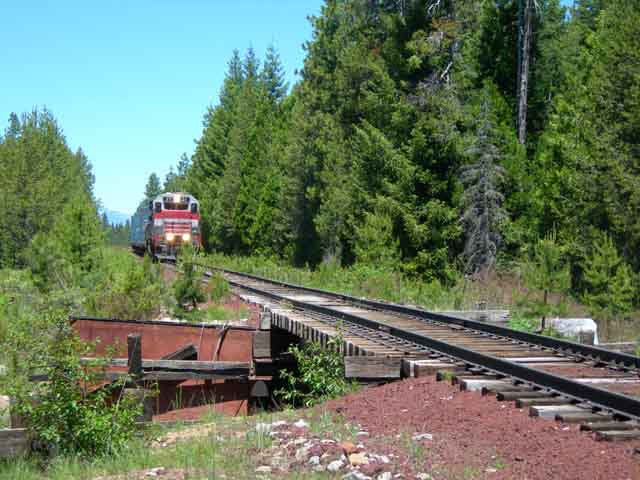 A few miles futher on the train is about to cross over Moosehead Creek on a short bridge. |