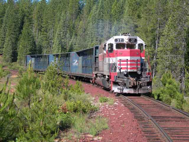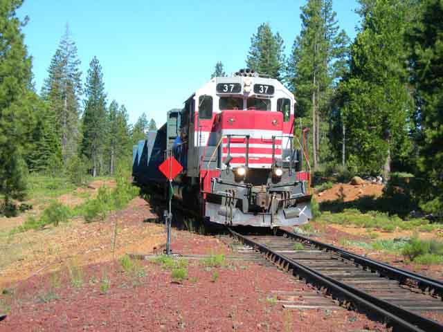 The first day of the second week of June started with a Yard & Hill Job. The railroad had brought in roughly a half dozen lumber loads from Burney late the week before, and on that day the #37 took them over the hill and returned to McCloud with three empty centerbeams. The railroad wrapped up the day's work by 1 p.m., well before McCloud Rails staff arrived in McCloud. |