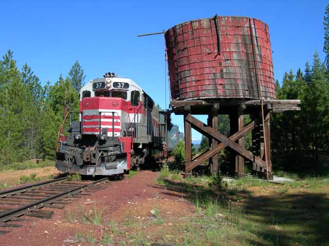 The #37 is preparing to cross Ash Creek. Tremendous mud flows off of Mount Shasta buried the railroad at this point on several different occassions in the late 1910's/early 1920's. |