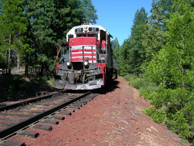 The shadows are starting to run tall as the #37 finally arrives at Cayton. The railroad started keeping a pickup truck here to allow Bob to drive himself to and from McCloud. |