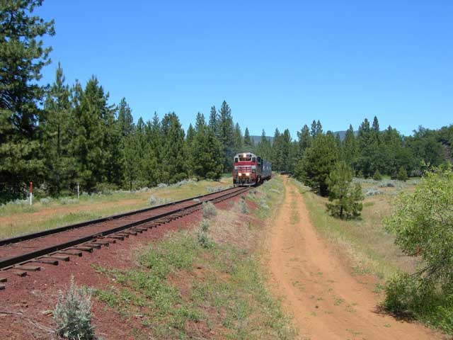 I passed on the chance to shoot the train at the Lake Britton bridge and instead headed for Arkrite, not far from the top of the grade that lifts the railroad up out of the Pit River Canyon. Arkrite once had a siding that served a snall Ditomaceous Earth shipper in the 1960's, but only concrete foundations remain today to mark the activity that went on there. |