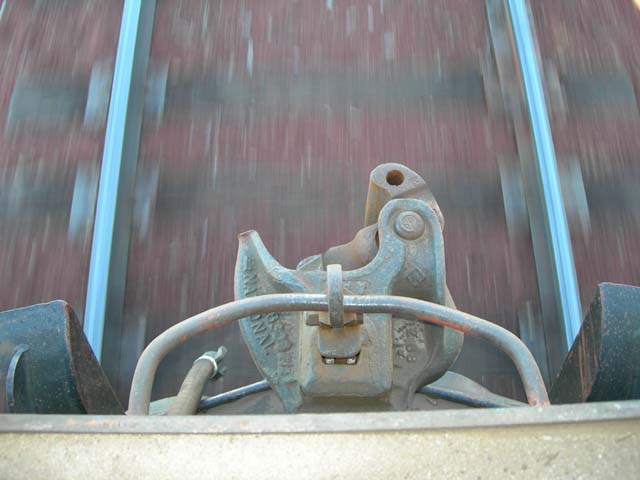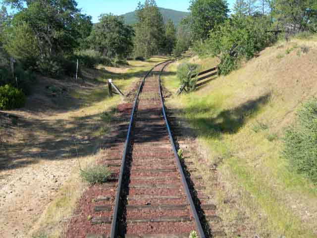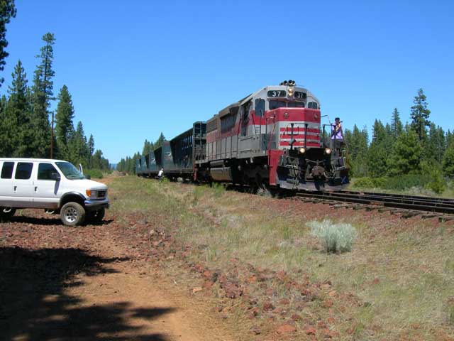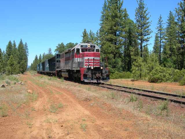 The train departs back up the Sierra branch as soon as the loads are picked up. The front coupler of the #37 makes for an interesting contrast against the roadbed. |