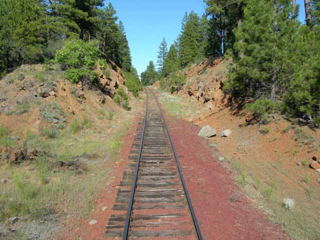 Cayton starts the beginning of a long climb up towards Dead Horse Summit. Around Milepost 40 the railroad passes through this deep cut. Much of the drive into this spot from Highway 89 is on original roadbeds built by the McCloud River Lumber Company during their active harvest operations in the 1930's-early 1950's. |
