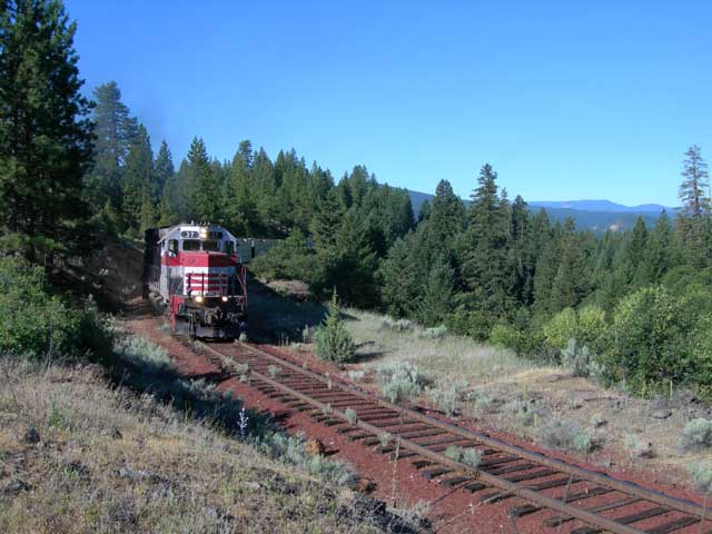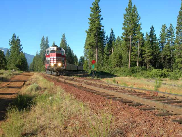 A few miles farther on and the light has gone completely bad. The #37 is coming off of the Burney leg of the Bartle wye. Bob will pause here long enough to pick up the four boxcars brought down from Car A two days before. |