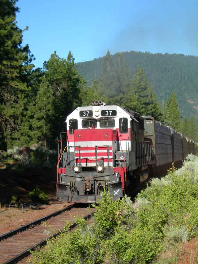 The #37 is coming off of the Sierra branch and is returning to the mainline. While waiting for this shot a skunk popped out of the brush not too far from me and scampered down the access road next to the tracks until he saw me, at which time he took off back into the brush. |