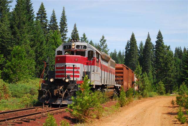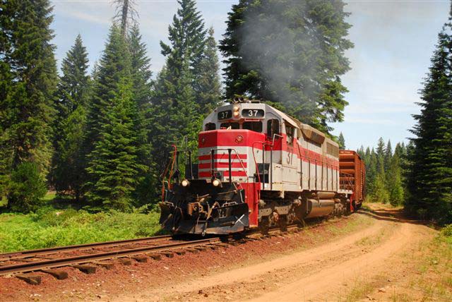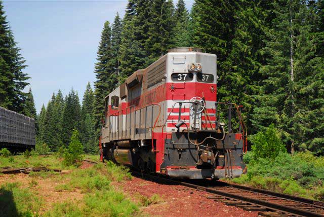 The #37 is backing down the Pondosa branch remnant towards the remaining boxcars stored at the end of track. Drew Jacksich photo, used with permission. |