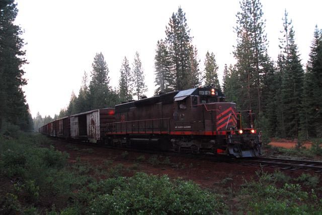 Early morning on the hill. The #38 is only a few miles out of McCloud with the empty boxcars. Drew Jacksich photo, used with permission. |