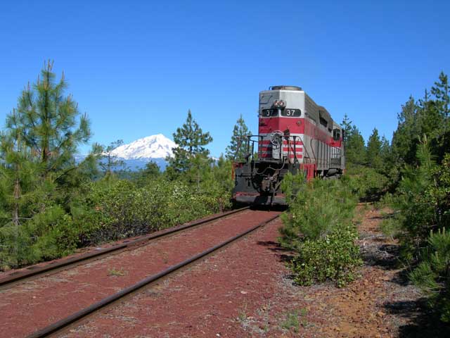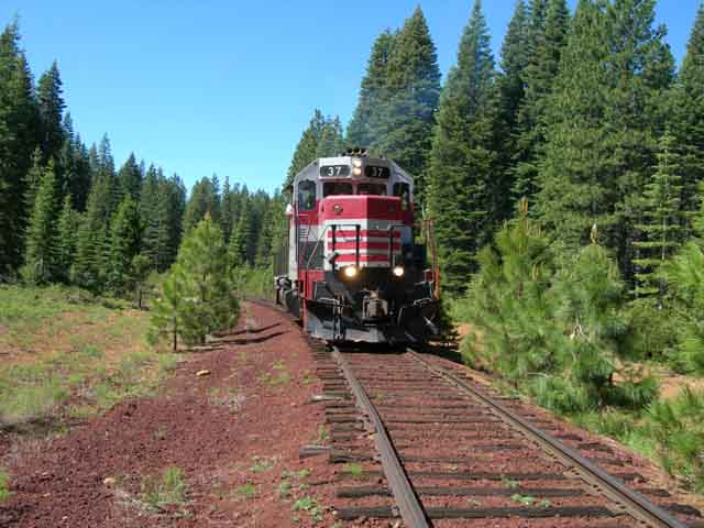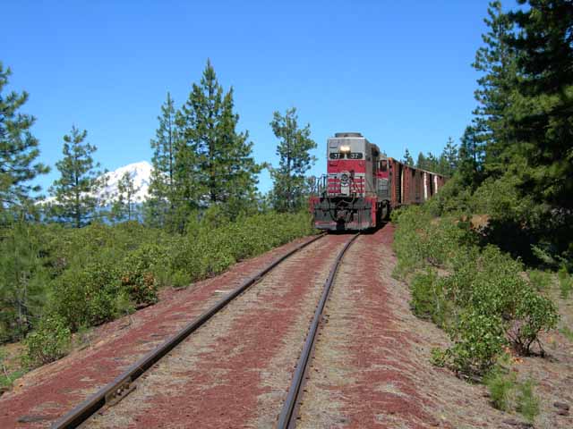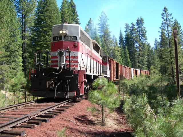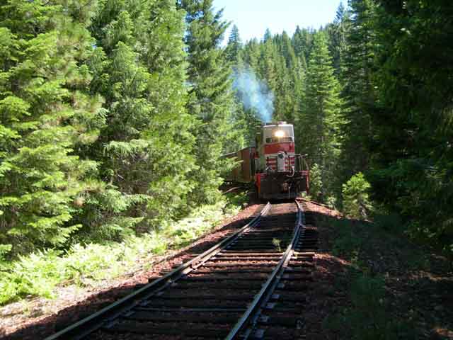 The #37 leading the train over the east leg of the Bartle Wye. The locomotive will leave the cars on the mainline just short of the west leg switch, where they will be picked up on the return trip to McCloud two days later. Baring a miracle this should be the last train movement on the old Lookout Line. |