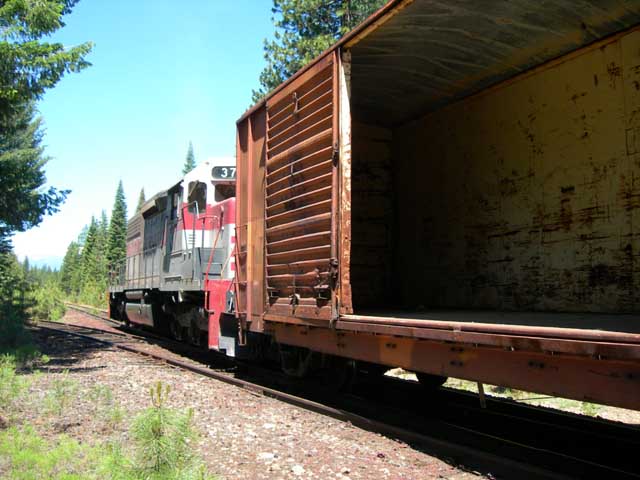 On Tuesday 20 June 2006 the McCloud Railway ran what should be the last train ever to venture up the Lookout Line beyond Bartle. The last train beyond Car A operated in mid-November 2005 when two locomotives ran through to Hambone to bring a string of boxcars stored in the siding there down to Car A. That trip is covered on the Last Train to Hambone page on this website. The boxcars remained at Car A through the winter. The railroad started to make efforts to get them in the Spring of 2006, but the amount of snow thwarted efforts to reach the cars. The railroad eventually decided to have Sierra jobs bring the cars down in cuts. By the third week in June only four boxcars remained at Car A, and the railroad decided to get them with the Sierra job scheduled for the 20th. |