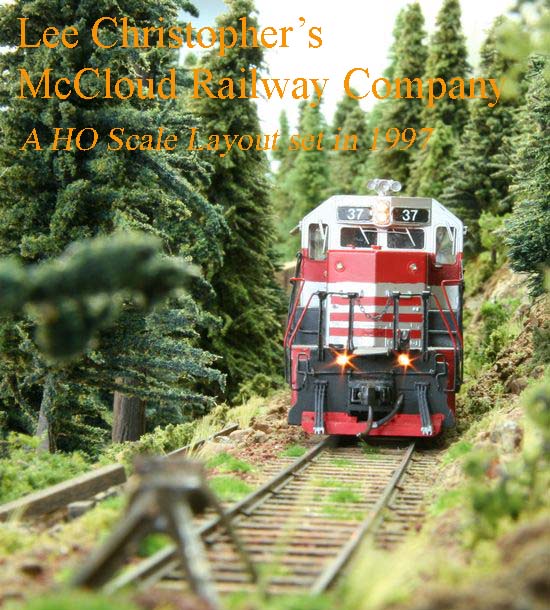 A good friend of McCloud Rails found photographs of Lee Christopher's HO scale layout representing the McCloud Railway Company circa 1997 on the railroad-line.com discussion board. After seeing only a couple photos McCloud Rails staff had to get in contact with Lee. Lee has granted permission for us to display his photos of his layout on this page. Thank you very much, Lee! Lee has done an absolutely incredible job on this layout; we think you will agree. Lee estimates that his layout is about one third complete; the area representing Mount Shasta to a little shy of McCloud is fairly complete, with the line through Cayton to Burney to be represented in a currently unfinished portion of the layout. McCloud Rails staff will continue to post photos of more of this fine layout as Lee is able to send them along. |