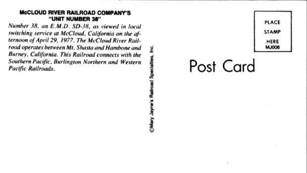 McCloud Post Cards: McCloud River Railroad Company's "Unit Number 38"
