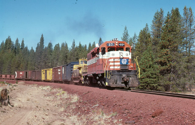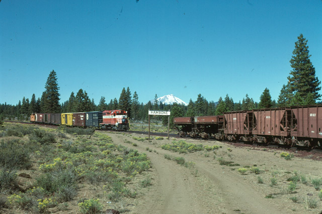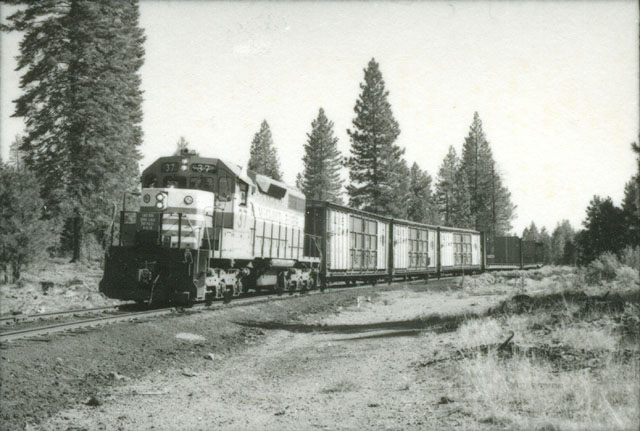 The train has completed switching at Lookout Junction and has started the return trip to McCloud. The first three cars in this train are boxcars re-built from all-door cars. |