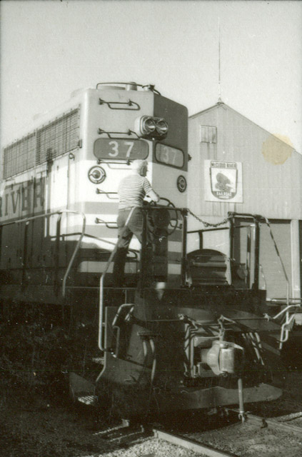 Ray waves from the cab of the #37 as the train leaves the McCloud yards. |
