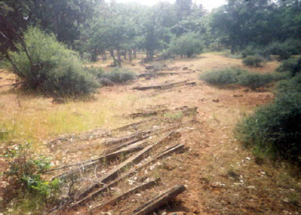 Remains of a trestle near Clark Creek on the line from Cayton Valley to Pit 3. |