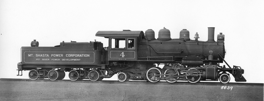 Partial Roster of Locomotives owned by the Mount Shasta Power Corporation and used on the Pit River Railroad: 4- Baldwin 2-6-2, c/n 56728, blt. 1924. Drivers 44”, cylinders 17x24, weight 125,720 lbs., b.p. 175 lbs., t.e. 23,400 lbs. Acquired new. To Key System Ltd, Oakland, CA, 1934; Oakland Terminal Railway #4, Oakland, CA, 1935; to Atchison Topeka & Santa Fe #2447 1943; to Modesto & Empire Traction #9 1944. Scrapped 4/1952. 5?- CRI&P 0-4-0T, blt. 1884. Built by Chicago, Rock Island & Pacific Railroad (Possibly #84?). To Union Sugar Company #4, San Francisco, CA; to Pacific Gas & Electric (Mt. Shasta Power Corporation Railroad); to Shanahan Brothers, Maywood, CA, 1937 (big gap between 1929 and 1937); to A-1 Iron & Metal Company, Los Angeles, CA, 1940; to Scrap Disposal Company, National City, CA, 1958; to Pacific Southwest Railway Museum, San Diego, CA, 1958, and loaned to restaurant in National City, CA, for a few years; to Short Line Enterprises in exchange for two Dardanelle & Russelville railroad coaches and moved to Jamestown, CA; to Walter Gray and two other private individuals; donated to California State Railroad Museum; sold 2009 to Santa Maria Valley Historical Society and moved to Santa Maria, California, for public display. 5- Lima 3-truck Shay, c/n 3263, blt. 8/1924. Drivers 36”, cylinders 12x15, weight 174,700 lbs., b.p. 200 lbs., t.e. 30,350 lbs. Acquired new. To Yosemite Lumber Company #5, Merced Falls, CA, 1929; to Yosemite Sugar Pine Lumber Company #5, Merced Falls, CA, 1943; to M. Davidson (Dealer), Stockton, CA, 1943; to Northern Redwood Lumber Company #5, Korbel, CA, 1945; to Simpson Redwood Company #5, Korbel, CA, 1957; to Lerner Steel Company (Dealer), Oakland, CA. Scrapped 1957. In addition, photographs show a small 0-4-0 tank locomotive #11 and a Plymouth 5- to 8-ton switcher #14, both probably narrow gauge. PG&E likely had others as well. Roster information courtesy of Martin Hansen and Cyrus Gillespie, among other sources; Information on #5 from shaylocomotives.com and Titan of the Timber by Michael Koch. |