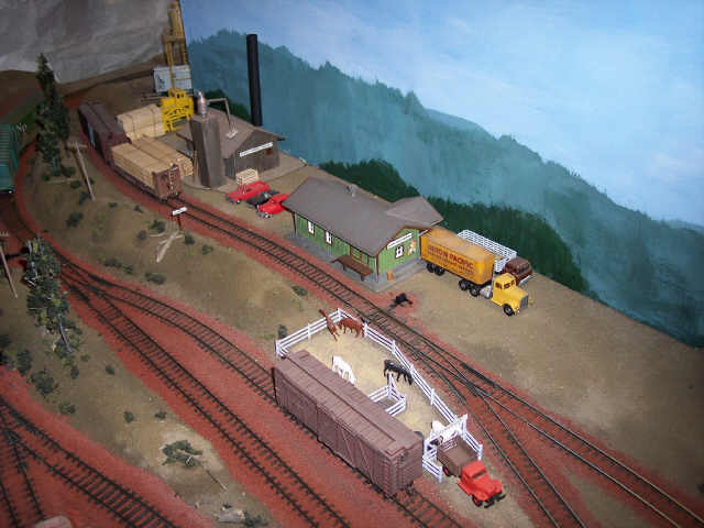 The tour concludes with this overview of Burney and Bartle. A sawmill in Burney and the freight depot are in the background, with the McIntosh Ranch loading pens in Bartle in the foreground. |