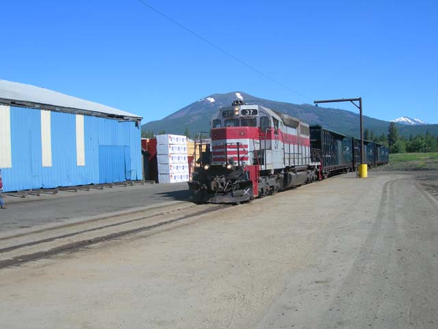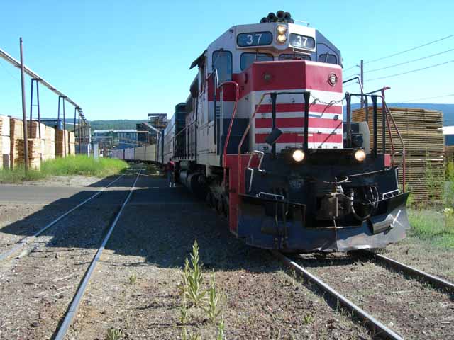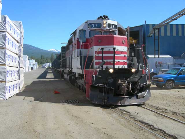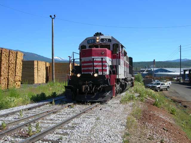 Scott Lumber Company The Burney basin contained vast stands of forests that remained mostly untapped until long after most of the other forests in the area had been cut over. The lack of transportation played a large part in this, with a secondary factor being that the Red River Lumber Company owned most of the best stands. The Red River planned to eventually harvest this timber for its own purposes, and as such it did not sell it to anyone else. On 15 December 1936 George Scott purchased a plot of land west of the town. The property had played a large part in the history of the town, as a general store and the first post office had stood on it for many years. On 21 January 1937 Mr. Scott purchased sawmill equipment from the Pensacola Company of Pinedale, California. By this point several others had become associated with the project, including Carl Phelps, John Fossett, John Berry, and Raymond Berry. These me incorporated the Scott Lumber Company in 1938 to take over the properties. The Scott Lumber Company eventually came to control 25,000 acres of timberland, with 17,000 of those acres purchased from Red River. Two logging sides fed the mill, with the company operating one and the other contracted out to gypos. The Scott Lumber Company came into existence at a time when acceptable roads started snaking their way into the Burney basin, which made trucking lumber to outside markets feasible. However, the company realized that it would be in a better position if it had rail service. The nearest railhead lay at Pondosa, two dozen or so miles up Highway 89. Scott soon had a deal worked out with the McCloud River Railroad to establish a reload near Pondosa, and the Scott Lumber Company soon became an important shipper on the railroad. The Scott mill continued to grow and prosper. The plant continued to expand, with a planer, dry kilns, two chippers, a bark product plant, and a printing press added to the sawmill. The plant finally gained direct rail service in 1955 after the McCloud River Railroad completed construction of its line into the Burney basin. The mainline of the railroad ended on the opposite side of town from the mill, and the railroad and lumber companies jointly built the seven mile long Scott branch. The Scott Lumber Company lasted until 1969, when the company sold out to Publishers Forest Products. Publishers Forest Products In 1969 Publishers Forest Products, a subsidiary of Times Mirror, purchased the Scott Lumber Company. Publishers ownership brought a period of stability and prosperity to the sawmill and the town of Burney. The new owners made many improvements to the properties, including a quad mill. The sawmill produced a little shy of 100 million board feet of lumber each year, which made it one of the largest sawmills in the area. The Publishers remained the largest shipper the railroad had in Burney. The good times lasted for nine years. In 1978 the company sent shockwaves through the local community when it closed the Burney mill. Sierra Pacific Industries Shortly after the sawmill closed Times Mirror sold it, along with 69,000 acres of timberland, to Sierra Pacific Industries for $36 million. SPI had roots in the California timber industry going back to the 1920's, with Archie Aldis (Red) Emmerson and J.B. Crook incorporating the current company in 1969. J.B. Crook left the company in 1974, with the Emmerson family taking complete ownership of the company at that time. Unfortunately, SPI purchased the Burney sawmill at the about the worst possible time. A series of interest rate hikes essentially stopped most construction work, which crippled the timber industry. Sierra Pacific Industries operated the sawmill only sporadically for the first several years they had it. However, by early 1982 conditions improved enough to allow SPI to resume curtailed operations, with the size and output of the mill expanding as conditions continued to improve. SPI's Burney mill provided the bulk of the outbound traffic originated by the McCloud River Railroad and McCloud Railway companies in the years since. The plant continued to grow and expand, with a large co-generation plant built in 1989 and an even larger one constructed in 2006. The plant shipped mostly lumber out over the railroad, with woodchips added from 1993 until the early 2000's. SPI started bypassing the McCloud Railway in 2004 by establishing a new reload on the BNSF at Nubieber; however, the company continued to ship over the McCloud until a $1,000 per carload surcharge prompted SPI to switch to trucks at the end of June 2006. All products now leave SPI on trucks, with rail shipments loaded onto railcars at reloads on the BNSF in Nubieber or the UP in Anderson, CA. Click here for Sierra Pacific Industries website