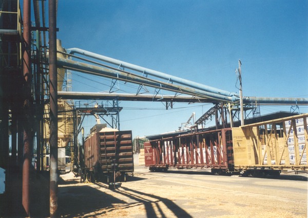 The woodchip loader the mill built in 1993 is on the left, with the lumber loading track on the right and the mainline running in between. |