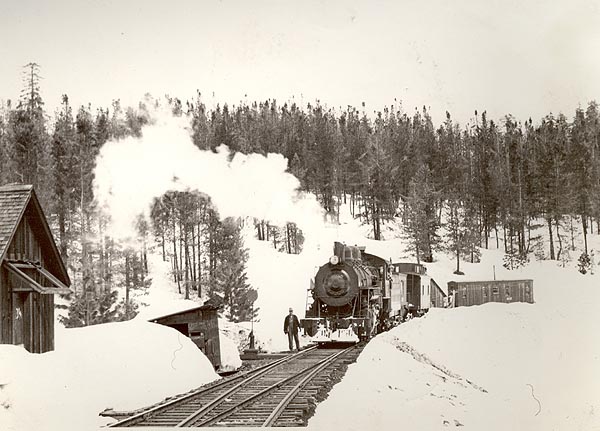 One of the mikados with a flanger and caboose #05 at Signal Butte. |